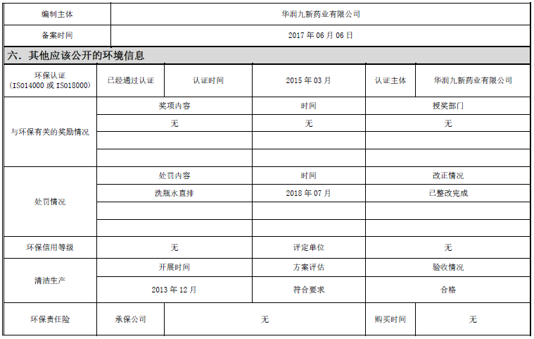深圳華潤九新藥業(yè)有限公司廢氣處理設(shè)施項(xiàng)目竣工環(huán)境保護(hù)自主驗(yàn)收公示