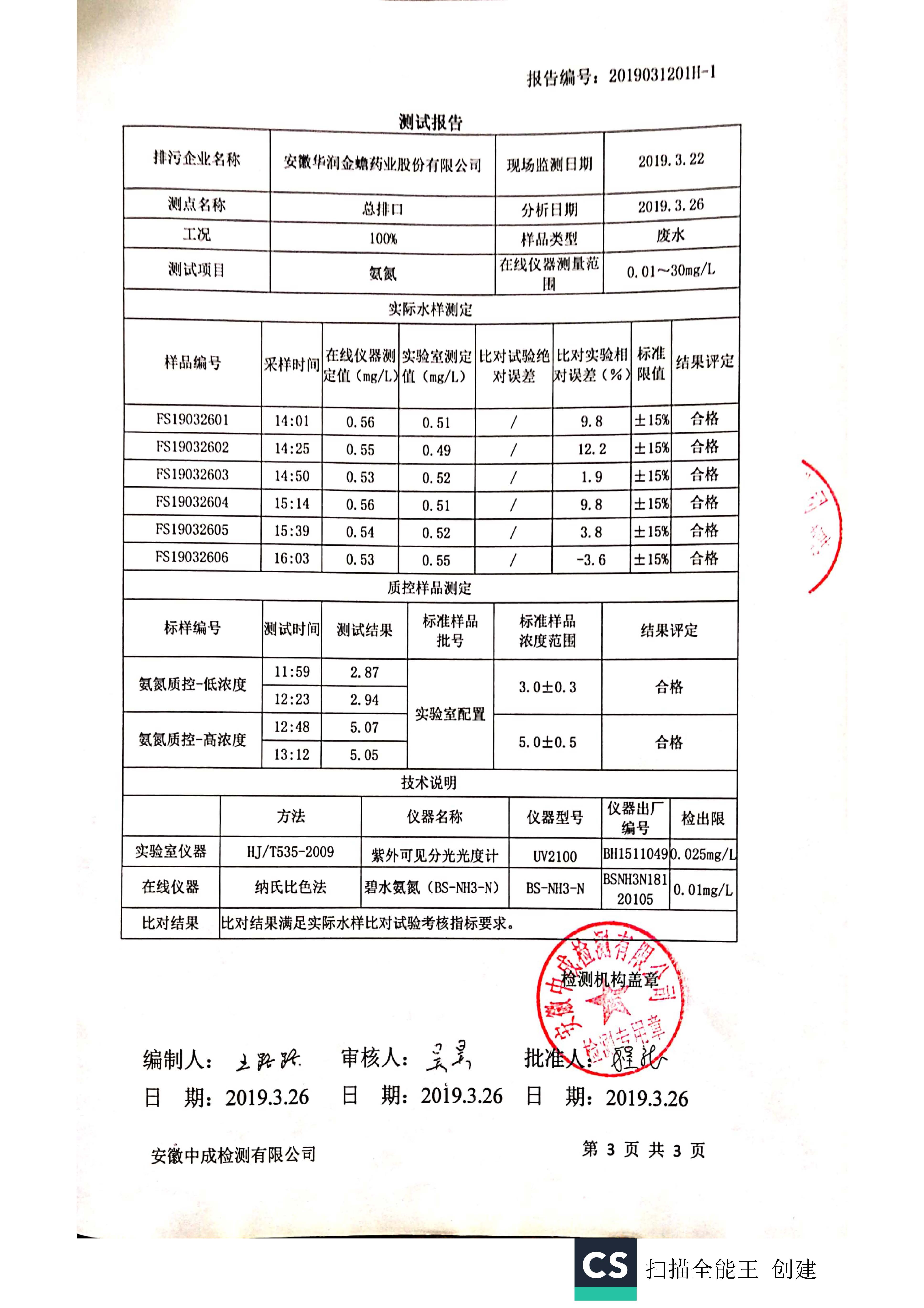 華潤金蟾污染物排放檢測報(bào)告(一季度)