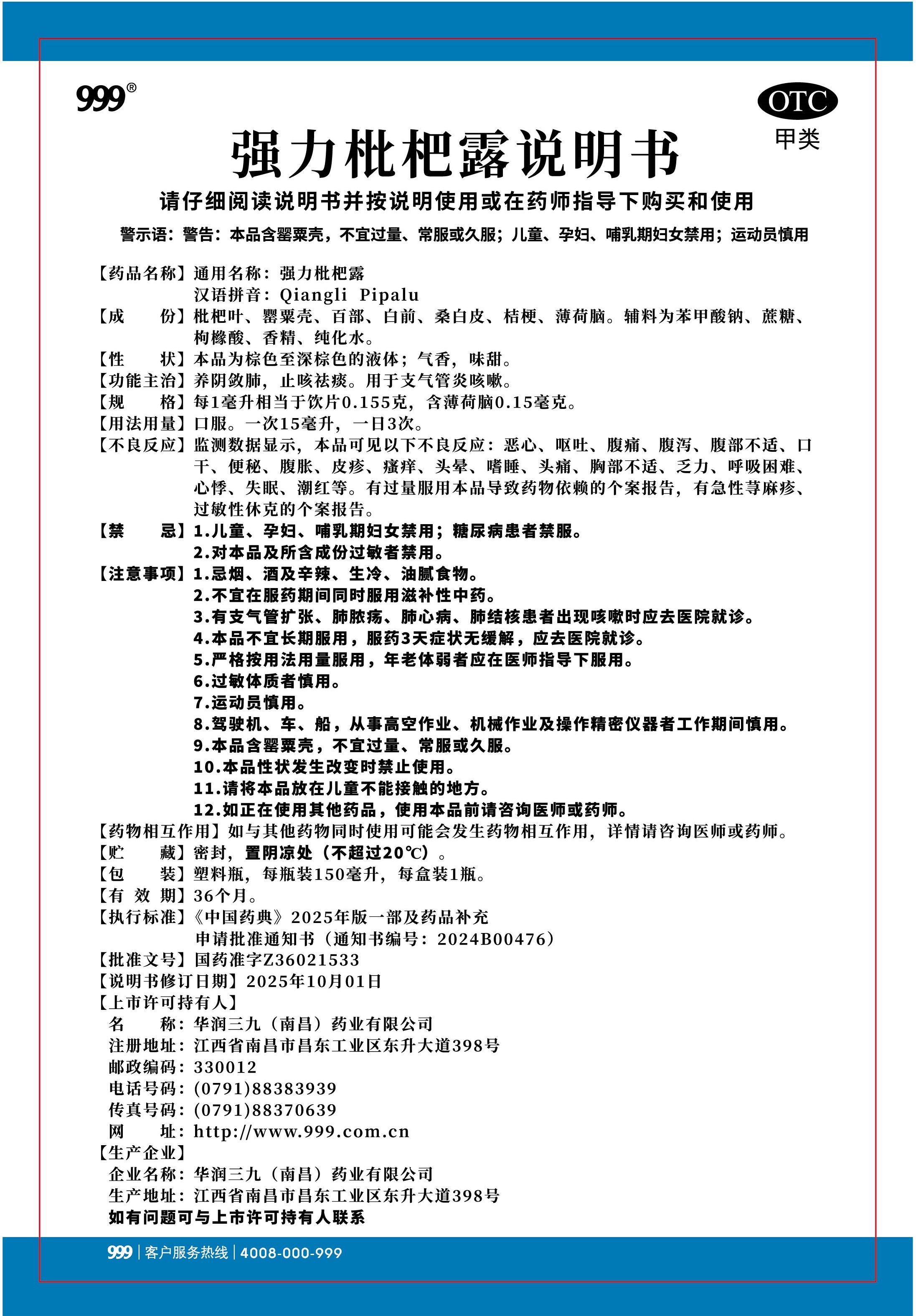 強(qiáng)力枇杷露-南昌三九(150毫升瓶裝)