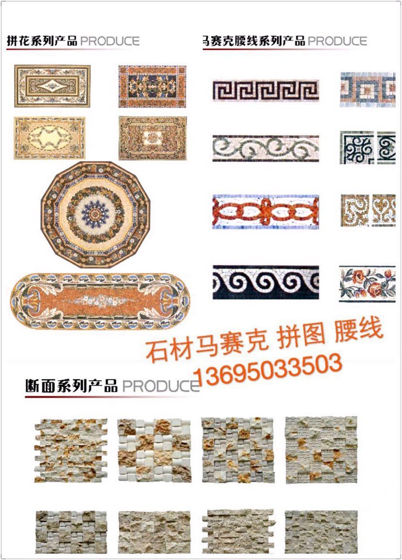 石材加工 水刀拼花 石材馬賽克 拼圖 拼花腰線 復(fù)合板等系列 歡迎來電詢價(jià) ??13695033503