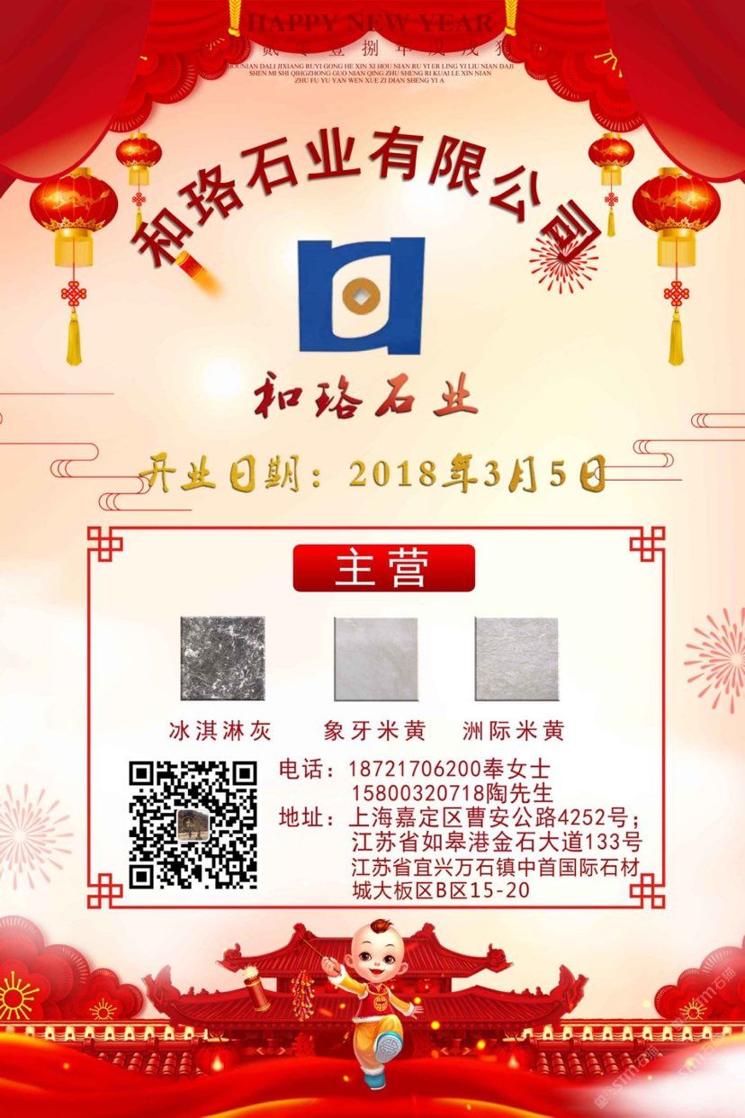 安徽和珞實(shí)業(yè)有限責(zé)任公司、注冊資金5千萬元整、主營:伊朗礦山、洲際米黃、象牙米黃、冰淇淋灰、香草米黃!承接市政工程及酒店賓館、別墅家裝一條龍服務(wù)!抱團(tuán)取暖、共贏發(fā)展!