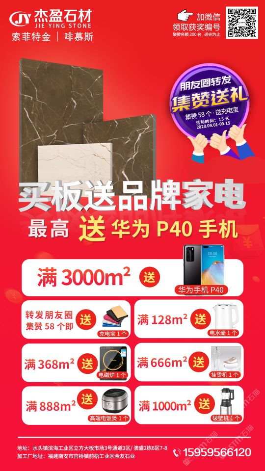 杰盈石材,專(zhuān)注索菲特金,地址:南安市水頭鎮(zhèn)濱海工業(yè)區(qū)立方石業(yè)3號(hào)通道3區(qū)