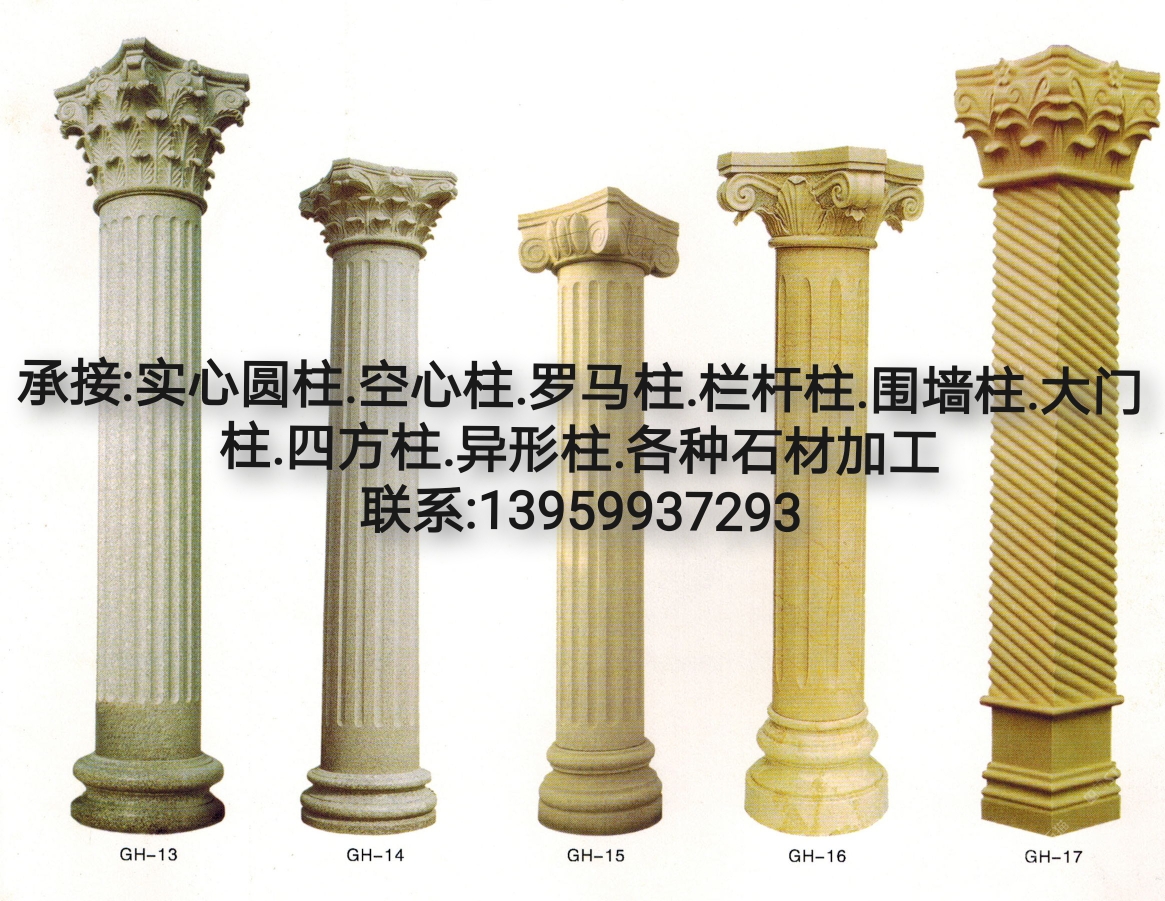 主營業(yè)務(wù):圓柱.羅馬柱.空心柱.異形圓柱.圓球.欄桿.背景墻.祠堂.廟吟石刻字.等等.....