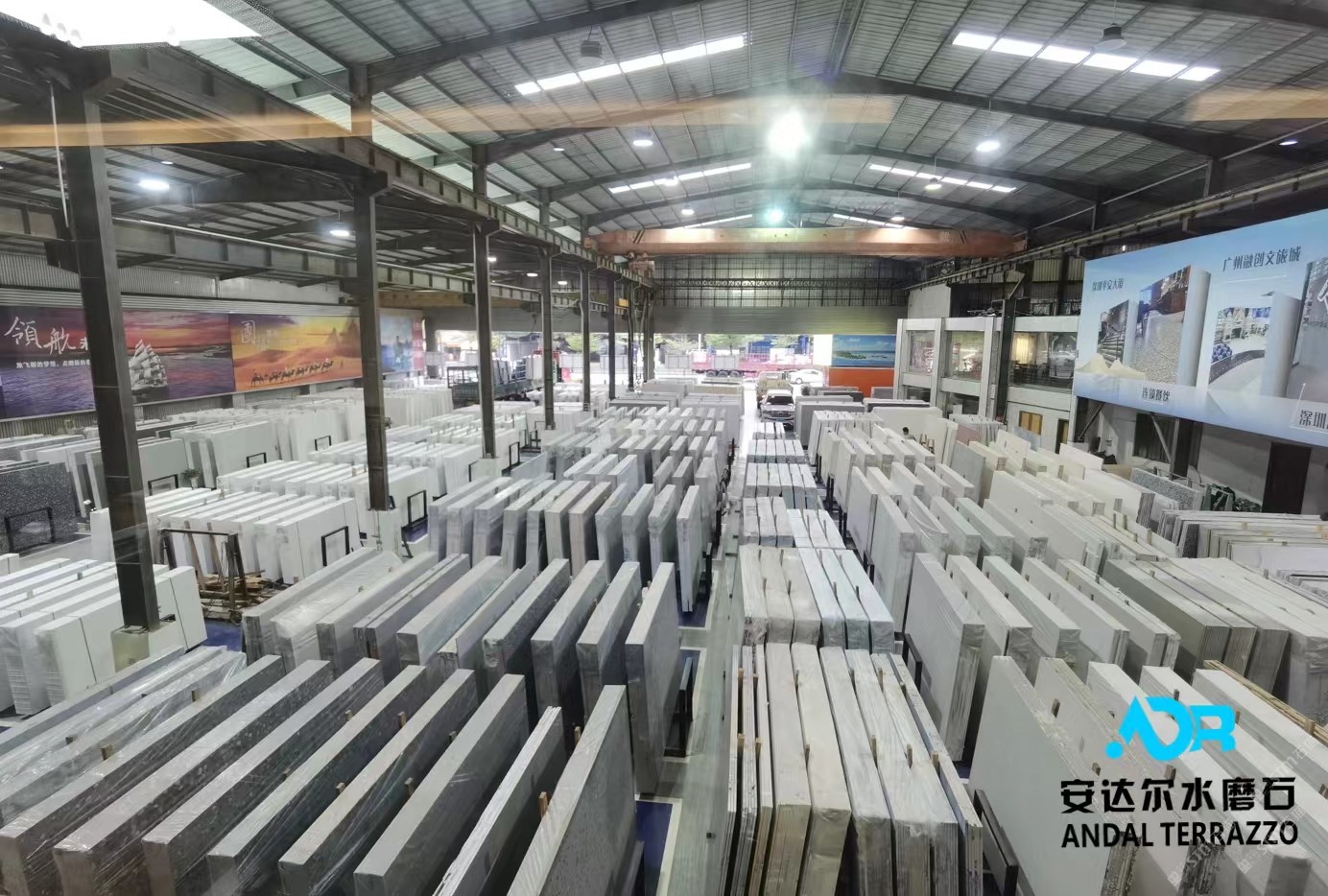 我們公司是廣東預制荒料型水磨石領銜企業(yè),工廠坐落于有著石材王國之稱的云浮市安塘格木橋轉(zhuǎn)移基地內(nèi),交通便利,石材品種集中;主要經(jīng)營預制型無機水磨石、無機木化石、無機條紋洞石;擁有國內(nèi)外先進的無機型水磨石荒料成型壓機,擁有先進的生產(chǎn)流水線板材加工快據(jù)及雄厚的技術(shù)力量,嚴格的檢測手段,保證產(chǎn)品質(zhì)量穩(wěn)定!同時也注重人才培養(yǎng),擁有一支集設計、施工、安裝及售后的專業(yè)團隊,精湛的手工及完善的售后服務深受國內(nèi)外廣大客戶的好評。作為供應商的我們,堅持企業(yè)發(fā)展,服務為本;優(yōu)質(zhì)服務,誠信為本;堅持開拓進取、勇于創(chuàng)新、學無止境的用心!\ \ ?? 我們的愿景: 樹立安達爾·無機水磨石成為國際價值品牌,為國內(nèi)外市場供應優(yōu)質(zhì)的石材產(chǎn)品。\ \ 產(chǎn)品介紹?:\ ☆安達爾·無機水磨石?含有高強度水泥原材料,采用環(huán)保型無機粘接劑、無機顏料,不含樹脂、膠水等有機成分,通過高頻高壓震動壓制成型。因不含樹脂等有機成分,原材料均為不燃,耐燃材質(zhì),產(chǎn)品達國際A級耐火標準,且高溫下不易變形,耐老化、耐污損、耐腐蝕、無異味無任何污染,不產(chǎn)生有害煙氣,安全環(huán)保。\ \ ☆適應領域?:適用于大型商場、酒店、廈、寫字樓、機場、車站、體育館、高端餐廳、地鐵項目及其他市政工程建設,還能應用于室內(nèi)外墻面、地面、廚房、衛(wèi)生間等領域。\ ?\ 產(chǎn)品概述?\ 類型:大板、荒料\ 規(guī)格尺寸:2700*1800 ?2400*1800(定制)1200X2400(木化石) \ ?厚度:18mm/20mm/25mm/30mm ?\ 處理面:拋光面、啞光面、荔枝面、火燒面、水沖面\ \ 主打品種系列(28款):\ 泰瀚灰、泰瀚白、宇宙深灰、中東灰、五十度灰、南京灰、卡其白、紅鉆、深宮啡、黃灰玉、新卡拉白、馬蹄蓮白、銀晶白、富士紅、綠野仙蹤、白玉蘭、粉紅世家、金碧輝煌、亞麻灰、銀灰白、月牙白、中國紅、安妮灰、條紋系列ST01、條紋系列ST02、條紋系列ST03、條紋系列ST04、\ ? \ 工程品種系列(42款):\ 玫瑰灰、杭灰、深圳灰、黃洞石、白洞石、灰洞、白森林、利仕特米黃、名牌灰、米黃鉆、深灰、珍珠白、雪花中青、藍色妖姬、珍珠黑、寒影灰、中東黃灰、漢白玉、啡鉆、泰瀚黑、灰森林、羅馬灰、淺灰、黑色水磨石、富士白、白姑娘、吉爾灰、金點綠、吉爾米黃、夏日灰、金碧輝煌、亞朵白、粉鉆星1號、灰、月亮灰、象牙白、白玉蘭、宇宙白、皇室灰、黃晶鉆\ ?