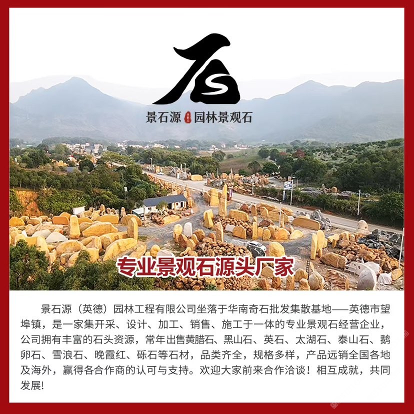 公司位于華南地區(qū)英石之鄉(xiāng)-清遠英德市。本地盛產(chǎn)各種石材、擁有多年的石材銷售經(jīng)驗,自有實體石場。經(jīng)營黃蠟石、英德石、中國黑、太湖石、青花石、黑山石、鵝卵石、青花石、礫石、泰山石、雪浪石、晚霞紅等等多種石材原料。刻字石、加工石、樹圍、景墻、地鋪、石槽石臺、水缽、石盆等多種異形加工產(chǎn)品