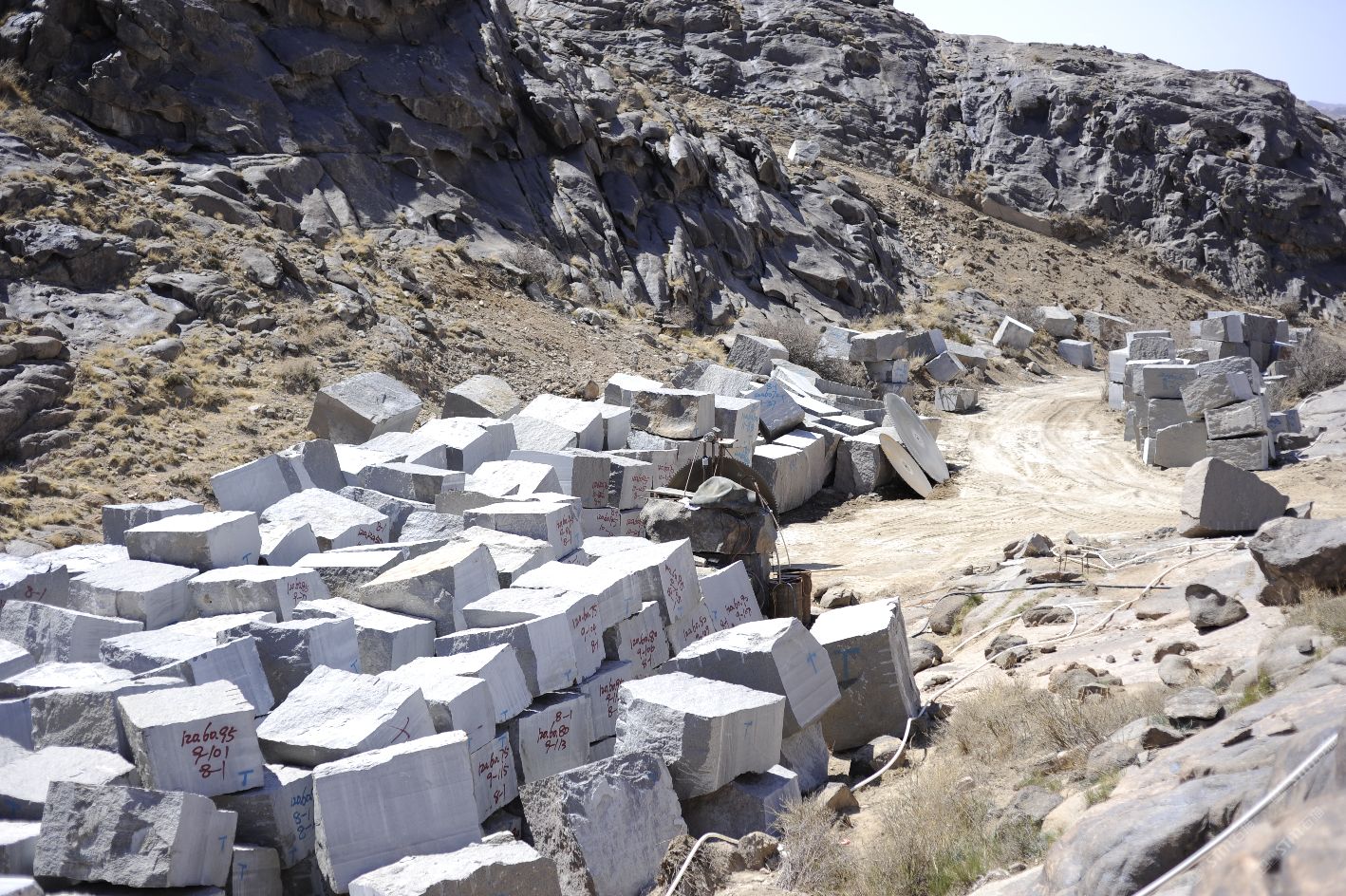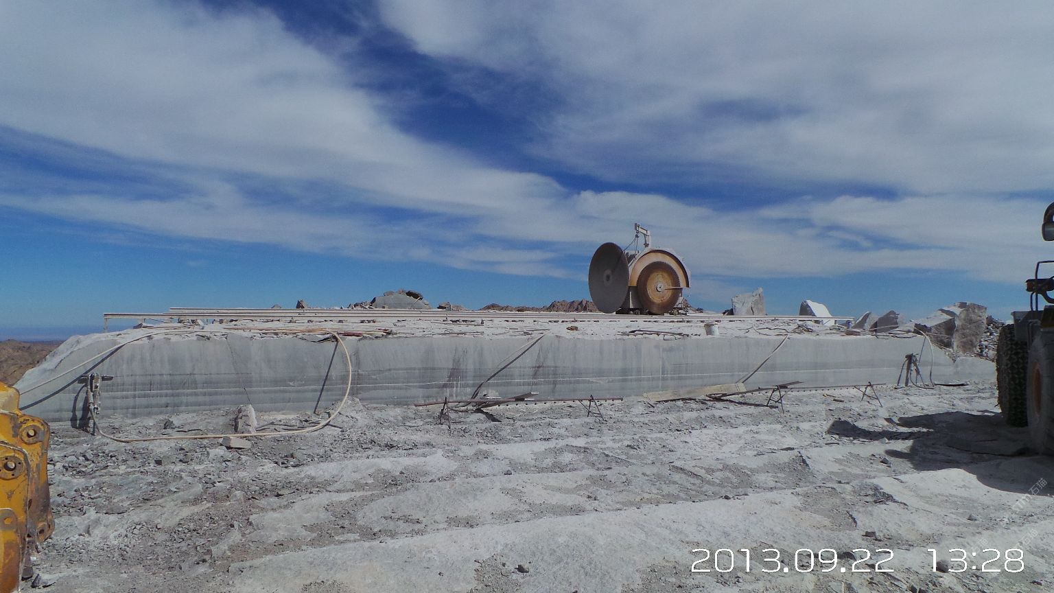 新疆煒通石材工貿有限責任公司成立于2007年,是一家集礦山開采、板材加工為一體的石材公司。公司擁有的奧莫爾塔格礦山位于哈密市東北方向,直線距離約160千米,礦區(qū)面積1.25平方千米,資源儲量約800萬立方米。礦山擁有一批優(yōu)秀的管理人員、技術精湛的開采隊伍和先進的機械設備,現(xiàn)有柴油發(fā)電機組8臺,濕式切石機6臺,滿負荷生產規(guī)劃為每年5萬立方米。