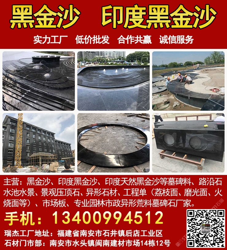 發(fā)布信息: 黑金沙水景工廠-瑞杰黑金沙林總13400994512主營(yíng):黑金沙、印度黑金沙、印度天然黑金沙、印度黑色石材、等墓碑料、路沿石、水池水景、景觀壓頂石、異形石材、工程單(荔枝面、磨光面、火燒面等)、市場(chǎng)板、專業(yè)園林市政異形荒料墓碑石廠家,實(shí)力工廠、低價(jià)批發(fā)、合作共贏、誠信服務(wù). 工廠地址:福建省南安市石井鎮(zhèn)后店工業(yè)區(qū),門市部:南安市水頭鎮(zhèn)閩南建材市場(chǎng)
