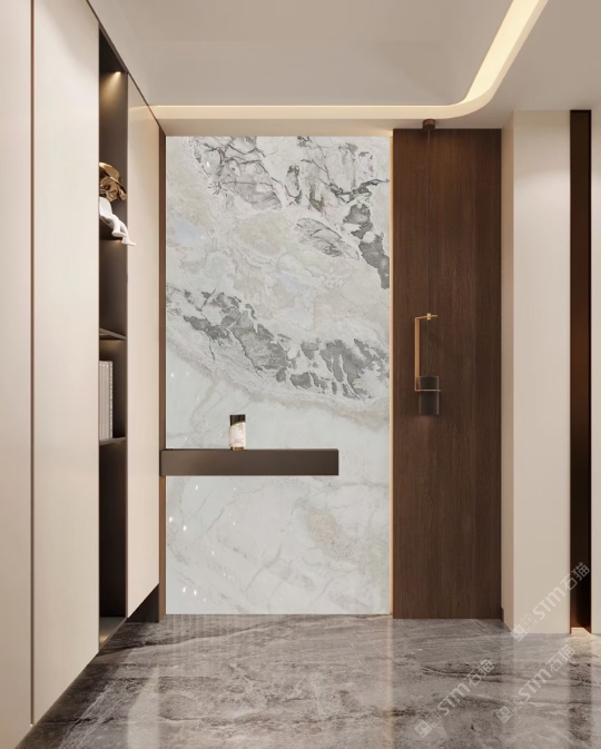 發(fā)布信息: 佰達(dá)奢石「芬迪白」 編號(hào): BD -222068 規(guī)格:2810x1620x18mm 「芬迪白」底色如脂如玉,細(xì)膩,不規(guī)則灰黑色紋理交織, 應(yīng)用場(chǎng)景廣泛,無(wú)論是電視背景墻、玄關(guān)、衛(wèi)生間洗手臺(tái)、餐桌、茶幾都可以駕馭。