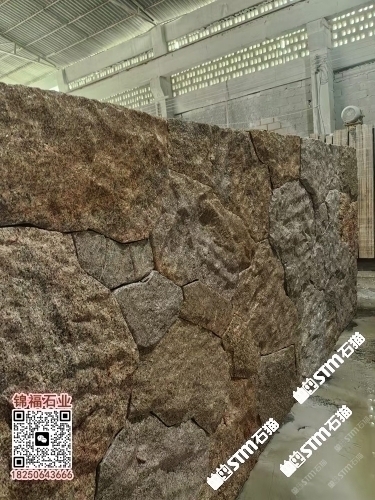 G682黃銹石自然面背景墻石井銹石石井蝦紅黃金麻