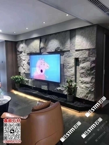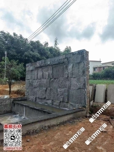 芝麻黑自然面背景墻流水石水景石材流水幕墻石皮背景墻