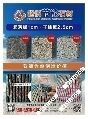 發(fā)布信息: 木瑪麗/藍(lán)寶石/英國棕(超薄板)吳總 13859760852手機(jī)微信同號-福建超悅石材薄板科技有限公司是一家專注于生產(chǎn)、研發(fā)花崗巖超薄板的研發(fā)型企業(yè),秉承“用創(chuàng)新的芯、做超薄的板、走節(jié)能的路”的發(fā)展理念,在多年來堅(jiān)持不懈的努力下,成功地研發(fā)了擁有環(huán)保性能及高新技術(shù)的超薄板,其優(yōu)點(diǎn)可與國際薄板加工技術(shù)媲美。 花崗巖超薄板被廣泛應(yīng)用于復(fù)合板領(lǐng)域,包括保溫材料和鋁蜂窩等,是建筑外墻裝飾材料的。該產(chǎn)品降低了建筑成本、節(jié)約了裝飾 材料,縮短了施工周期,是當(dāng)今社會廣為提倡和國家大力推廣的綠色、環(huán)保、節(jié)能建筑裝飾材料。 公司堅(jiān)持奉行“創(chuàng)新永不止步,品質(zhì)始終如一”的經(jīng)營理念,爭創(chuàng)花崗巖超薄板領(lǐng)導(dǎo)品牌,將花崗巖超薄板做專做精做廣做強(qiáng)。