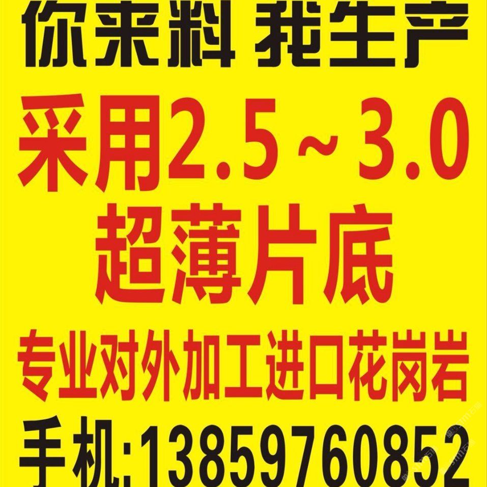 發(fā)布信息: 一、大量生產(chǎn)5/8/10毫米花崗巖超薄板 二、3.0鋸片對外加工市場板工程板 【福建超悅石材薄板節(jié)能科技有限公司】 歡迎來料加工13859760852
