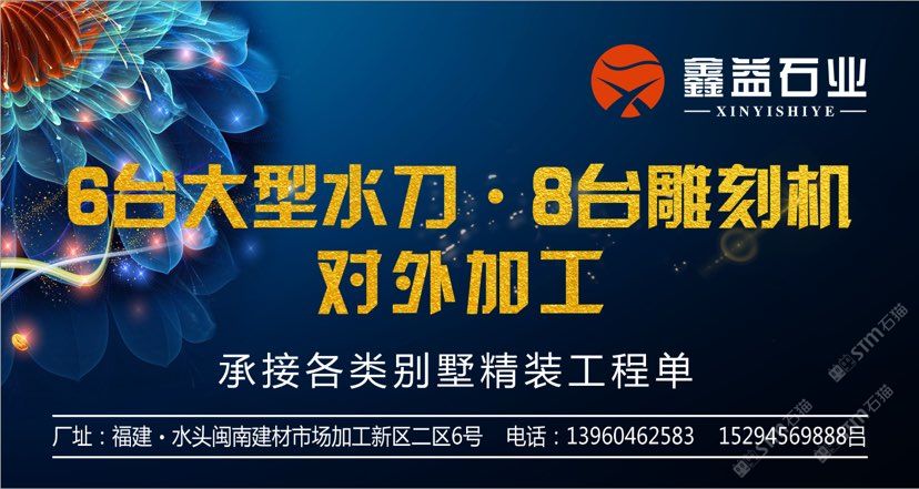 發(fā)布信息: 水刀拼花·CNC雕刻專業(yè)生產(chǎn)商!—《鑫益水刀·雕刻》 本廠配備6臺(tái)大型水刀、8臺(tái)雕刻機(jī)對(duì)外精加工,滿足各類家裝、工裝需求!期待合作 地址:福建·水頭閩南建材市場(chǎng)加工新區(qū)二區(qū)6號(hào) ??:13960462583,15294569888呂