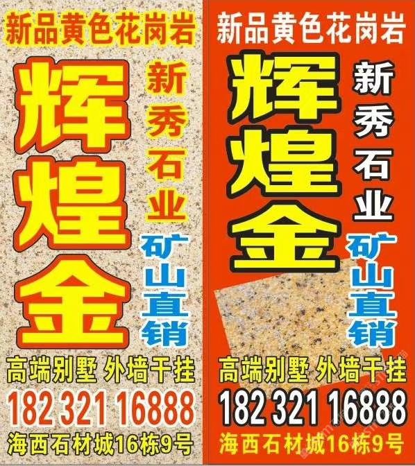 發(fā)布信息: 輝煌金/黃金麻,現(xiàn)在荒料、板材大量到貨,色澤金黃,需要的聯(lián)系我哦!