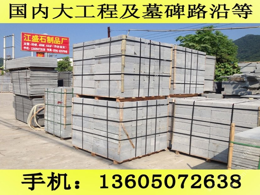 發(fā)布信息: 長(zhǎng)泰縣江盛石制品廠(王先生 手機(jī)微信:13605072638)位于福建長(zhǎng)泰的石材之鄉(xiāng)--林墩后爐工業(yè)區(qū),擁有自己大型的G654礦山,在天津與杭州有經(jīng)銷部,是一家集礦山開采、生產(chǎn)加工及經(jīng)銷部為一體的專業(yè)石制品供應(yīng)商.距廈門市60公里,離郭坑火車站僅40公里,不論是汽運(yùn),船運(yùn)或者鐵路運(yùn)輸都十分便捷. 公司主要經(jīng)營(yíng)G654芝麻黑,G655#,G614#,G603#,銹石等磨光板、火燒板、荔枝面、龍眼面、蘑菇石、機(jī)刨石、路沿石、滾石、盲道石及異形加工。G654#石材被廣泛用于鋪設(shè)廣場(chǎng)、公園、街道、停車場(chǎng)等場(chǎng)所,具有防滑、抗酸堿、耐磨、耐壓等優(yōu)點(diǎn),可拼鋪成各種幾何圖案,美觀實(shí)用,符合現(xiàn)代建筑人與自然相結(jié)合的審美情趣,是工程建設(shè)、室內(nèi)外裝飾的建材,還可根據(jù)客戶需求加工石雕、影雕、碑石、墓石等工藝品。產(chǎn)品遠(yuǎn)銷香港、臺(tái)灣、日本、東南亞、歐洲等地。北京東方廣場(chǎng)建筑群、上海世紀(jì)大道、廈門國(guó)際會(huì)展中心地面工程等均采用了G654#等石材產(chǎn)品。 公司自創(chuàng)建以來(lái),秉承重合同守信用,質(zhì)優(yōu)價(jià)廉的經(jīng)營(yíng)理念,視客戶的需求為我的需求,客戶的滿意為我的滿意,贏得了客戶的一致好評(píng).真誠(chéng)歡迎新老客戶來(lái)電來(lái)函洽談.王先生聯(lián)系手機(jī):13605072638