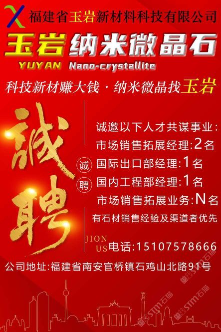 發(fā)布信息: 福建省玉巖新材料科技有限公司 科技新材賺大錢(qián)?納米微晶找“玉巖” 企業(yè)文化: 愿景: 融納米微晶石 塑匠心玉巖魂 使命: 推動(dòng)環(huán)保建材 共建美好未來(lái) 價(jià)值觀: 感恩奉獻(xiàn),成人達(dá)己, 科技創(chuàng)新,精益求精。
