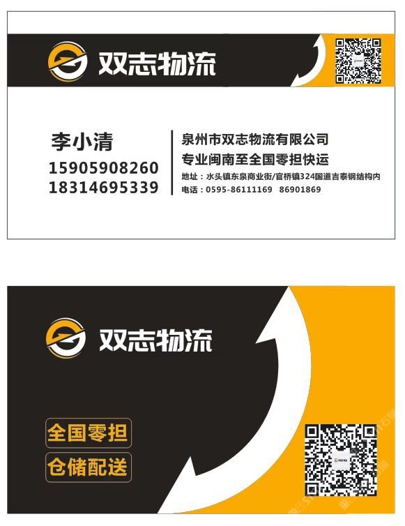 發(fā)布信息: 【雙志物流】十七年專業(yè)福建閩南至全國零擔(dān)往返快運(yùn)倉儲配送等貨物運(yùn)輸!大泉州地區(qū)同城一日達(dá)物流運(yùn)輸,水頭、官橋、晉江三個(gè)倉儲中心打造大泉州同城智慧物流。歡迎廣大客戶監(jiān)督指導(dǎo)合作共享! 零擔(dān)天天發(fā)車,隨時(shí)可提貨! 歡迎新老朋友來電咨詢?? 手機(jī)微信同號? 零擔(dān)熱線:18314695339 整車熱線:15905908260