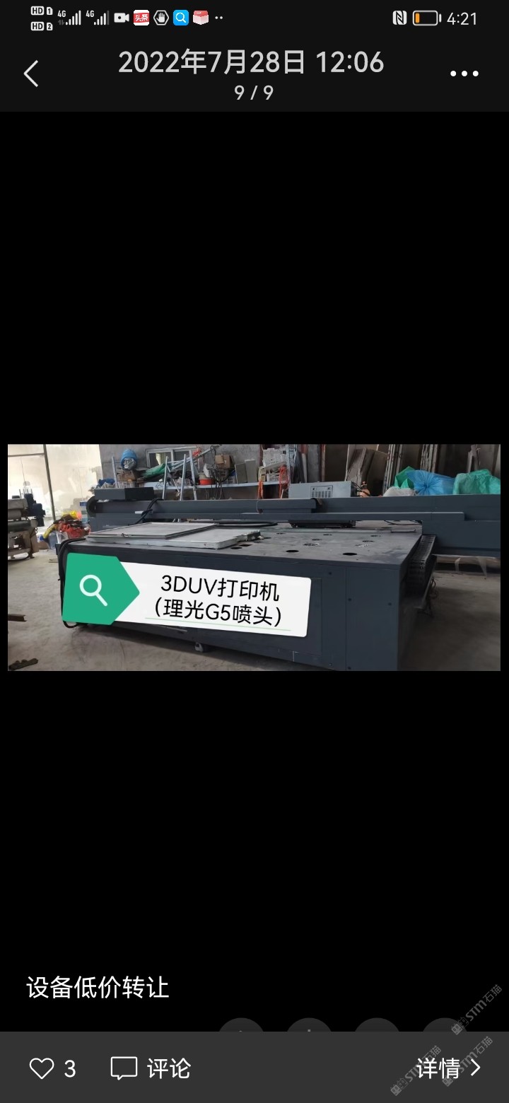 發(fā)布信息: 大理石過渡架15臺,180度翻板機,五燈固化機,雙滾滾涂機,單燈固化機,22千瓦除塵柜,3dUV打印機