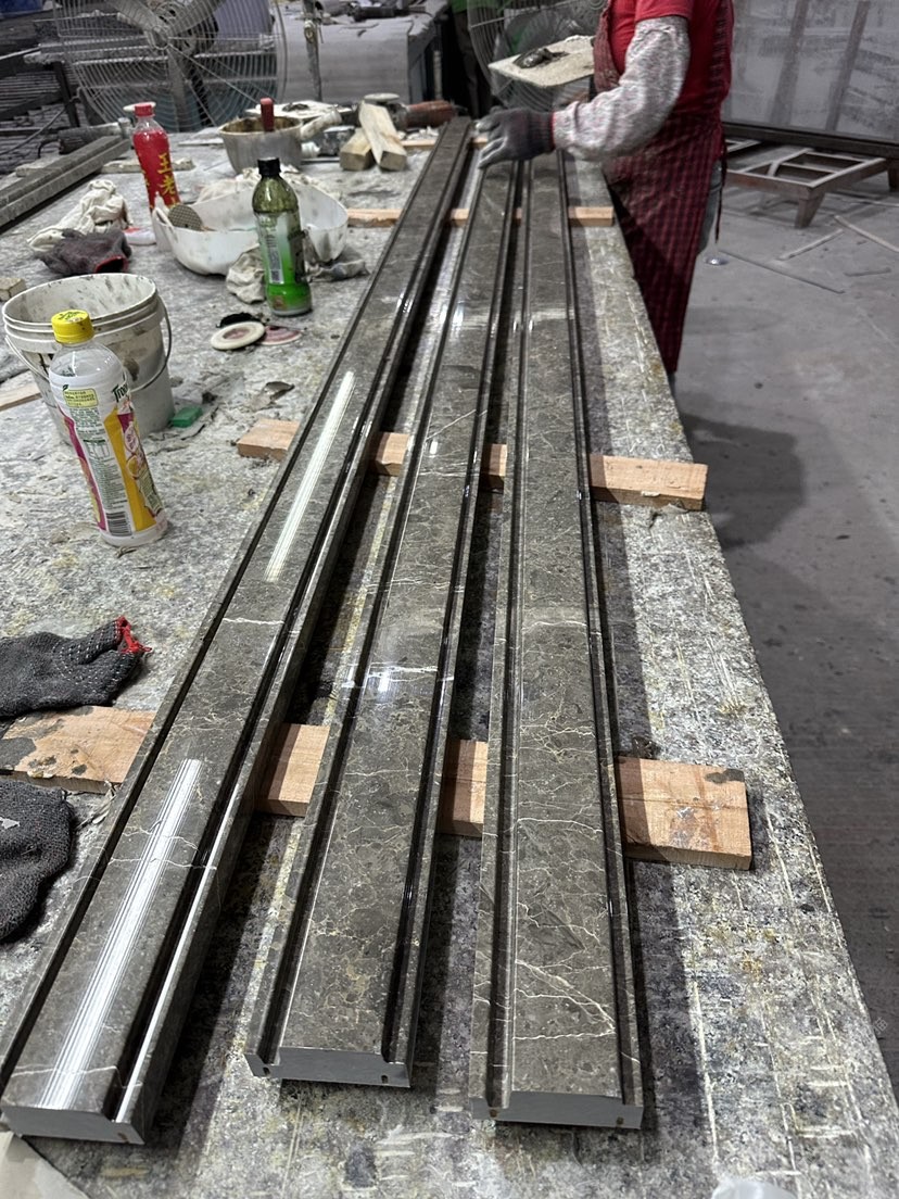 傳百石業(yè):西西里灰電梯門套線條工程定制。