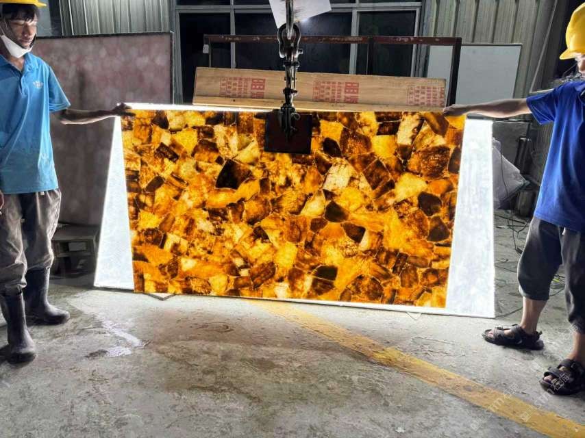 批發(fā)定制透光黃水晶寶石板,透光石,半寶石板材