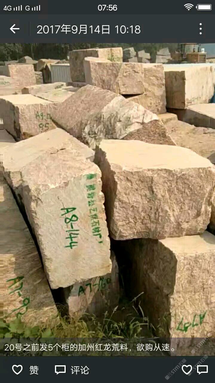 發(fā)布信息: 加州紅龍廠家,雪浪石,小米黃,黑白山水石。電話13960213938微信同號(hào)。地址,水頭建材市場(chǎng)32棟15號(hào)。海西建材市場(chǎng)11棟10號(hào)。水頭工廠地址,建材市場(chǎng)對(duì)過(guò),銘亮石材廠?;牧?,海西荒料市場(chǎng)2號(hào)倉(cāng)1號(hào)吊下邊。廠址河北省石家莊市靈壽縣東木佛橋北100米路西。河北荒料,石家莊市靈壽縣南紀(jì)城港源物流。