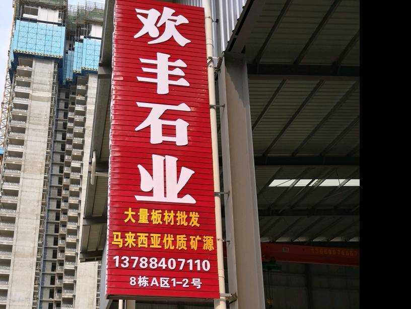 廣西歡豐石業(yè)有限公司 聯(lián)系人:雷桂春    150****3326 查看 手機(jī)號(hào)碼:無(wú) 主營(yíng)范圍: 大板批發(fā)、荒料、大理石加工、石材馬賽克、花崗巖加工、 企業(yè)地址:廣西南寧市南寧市興寧區(qū)天德路9號(hào)海普國(guó)際石材城8棟A1-2號(hào)