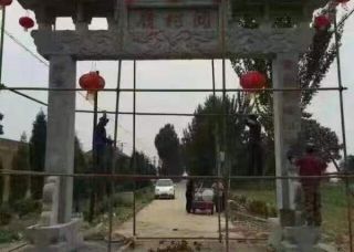 花崗巖芝麻灰芝麻白單門牌坊,牌樓