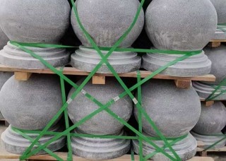 湖北G633灰色石材擋車石球英山灰芝麻灰路障石球