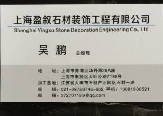 上海盈敘石材裝飾有限公司主營(yíng)產(chǎn)品:法國(guó)米黃3,奧特曼,白玉蘭,沉香米黃,金蜘蛛,希臘白木紋1,土耳其灰,黃金麻淺黃,湖北白麻,富貴紅1,藍(lán)色妖姬企業(yè)地址:上海青浦區(qū)華新鎮(zhèn)華丹路28A座