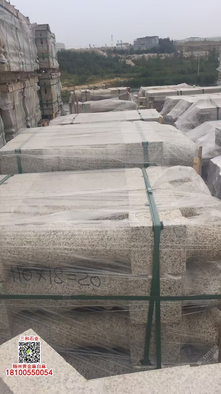 隨州黃金麻石材-隨州白麻花崗巖-光面黃金麻-燒面黃金麻-荔枝面黃金麻-光面白麻-燒面白麻-荔枝面白麻 隨縣三和石業(yè) 劉經(jīng)理 18100550054(微信同號(hào))專業(yè)隨州黃金麻/白麻供應(yīng)商廠家,工廠位于隨州石材工業(yè)園;專注于別墅幕墻干掛工程及園林地鋪石材加工,實(shí)力工廠,廠礦一體;主營(yíng):隨州黃金麻、隨州白麻、湖北黃金麻、湖北白麻、黃銹石、白銹石、黃色麻石、白色麻石、光面黃金麻、燒面黃金麻、荔枝面黃金麻等花崗巖;同等品質(zhì)基地批發(fā)價(jià)格更低,隨縣三和石業(yè)有限公司歡迎你來(lái)電溝通洽談業(yè)務(wù)!